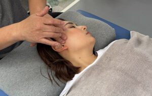 全く痛くないソフトな手法で、顔から頭にかけての皮膚筋膜を緩めていきます。
